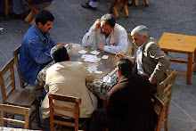 Tipica terraza kurda: mesas bajas, taburetes enanos y testosterona